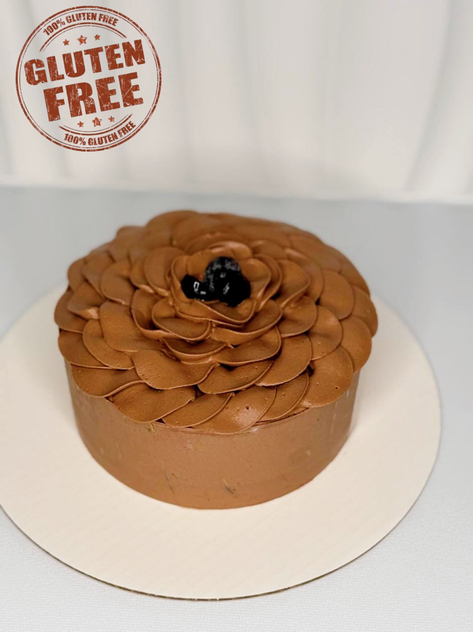 Black Forest Cake A classic cake that brings true delight to connoisseurs of exquisite taste! Moist gluten-free chocolate sponge is infused with rich cocoa aroma, creating the perfect foundation for juicy cherry coulis with natural berries. Delicate chocolate-cherry crème melts on your tongue, revealing a rich palette of flavors from sweet chocolate to tangy cherry tartness. The composition is completed with refined dark chocolate ganache, which adds elegance and depth of flavor to the dessert.