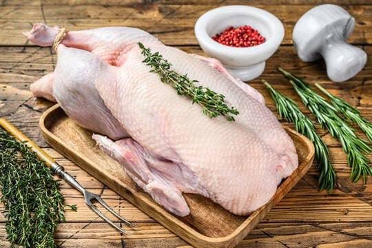 Organic duck. No Antibiotics Ever. No hormones or steroids added. Fed a vegetarian diet. Hatched, raised and harvested in the USA. Air chilled. Non-GMO.