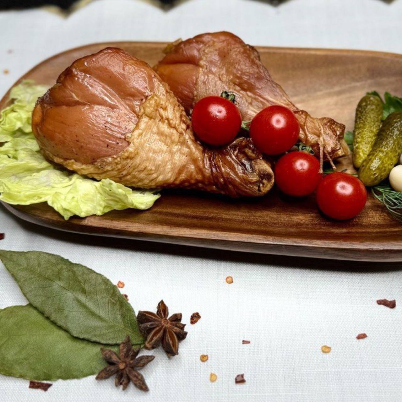 Smoked chicken drumsticks with skin are a classic American delicacy prepared using traditional hot smoking technology. Premium chicken drumsticks are marinated in natural spices and undergo slow smoking, which gives the meat a distinctive smoky aroma and juicy flavor.